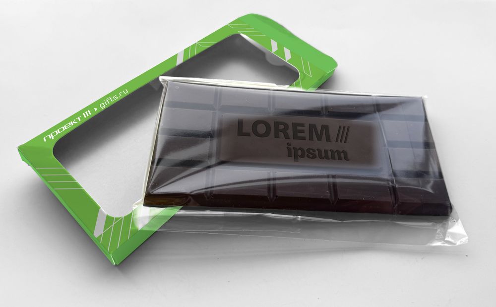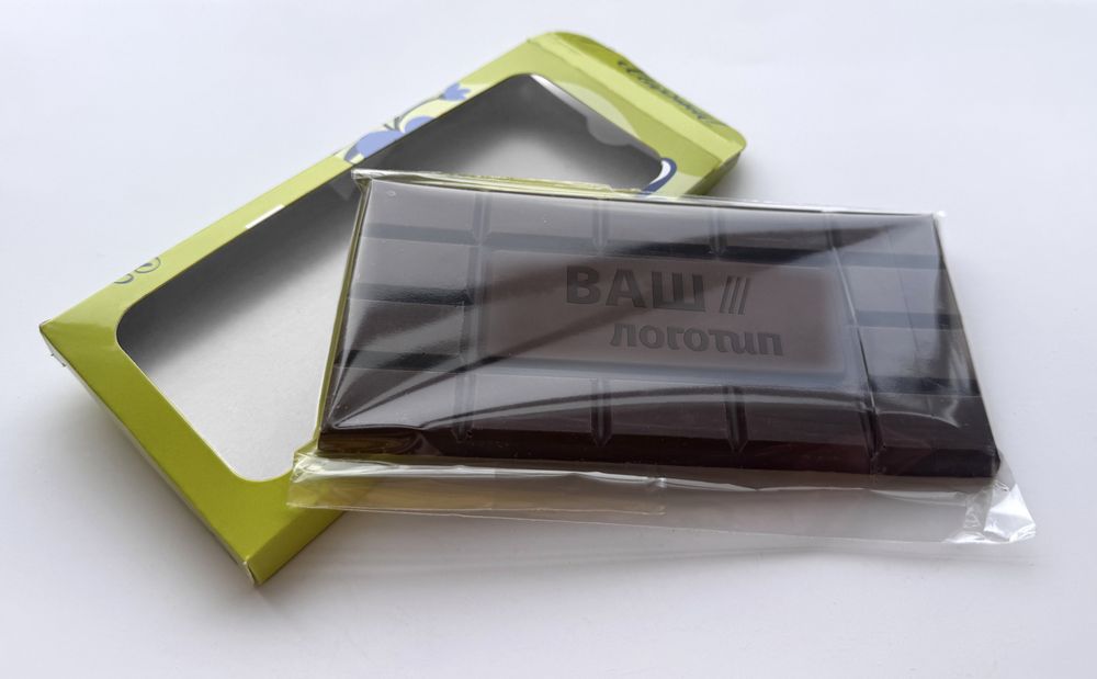 Окошко позволяет увидеть шоколад, не открывая коробку. Полноцветная печать упаковки выполняется по вашему дизайн-макету.