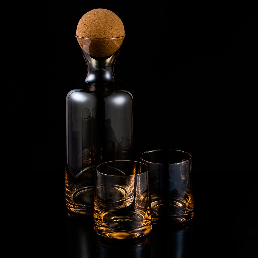 В комплекте декантер и 2 стакана.