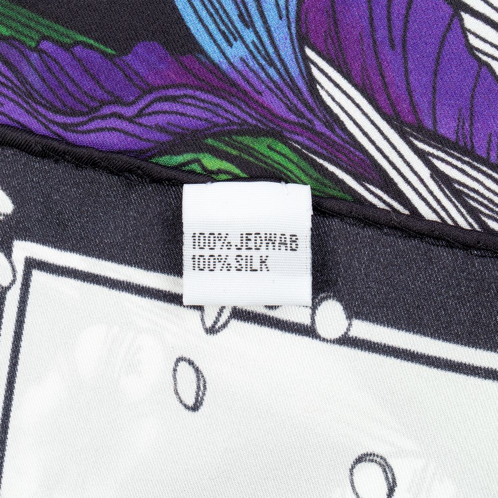 Шелковый платок с цветочным принтом открывает простор для фантазии — его можно использовать как шарф, головной убор или декоративный элемент для верхней одежды и аксессуаров.