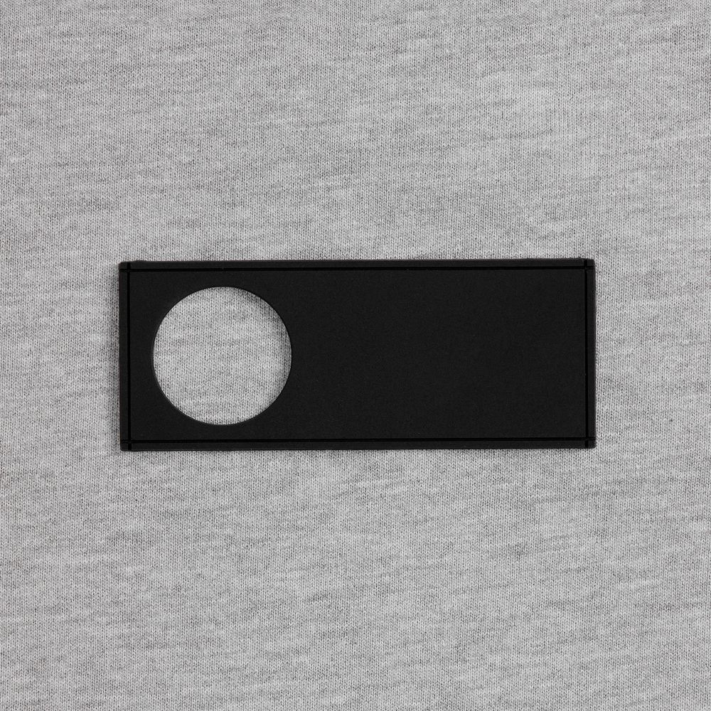 - сделать нанесение на изделии, поверх которого нашить лейбл так, чтобы вырубка стала частью целостного уникального дизайна.