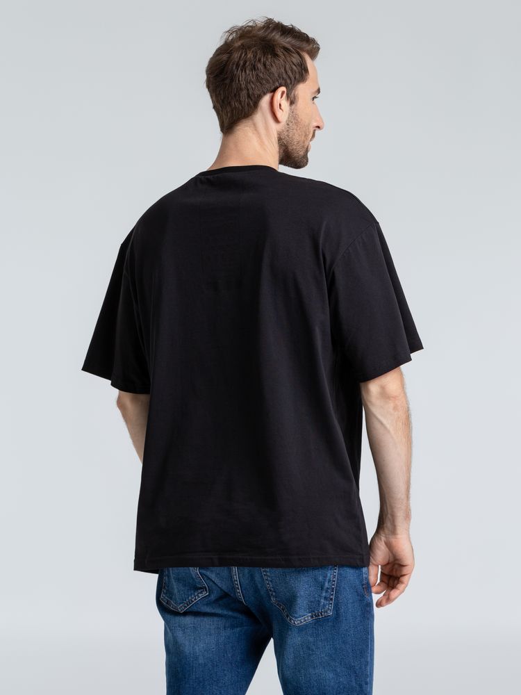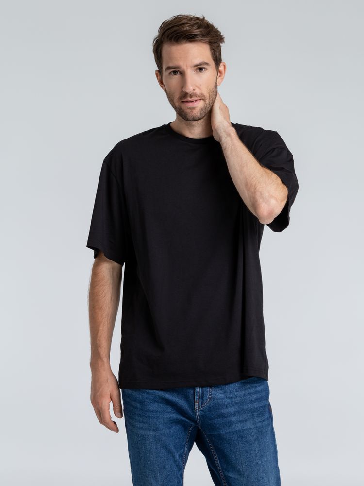 Футболка унисекс со спущенным плечом и круглым вырезом, отделанным резинкой.