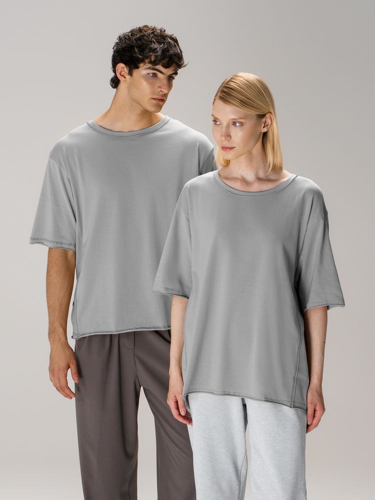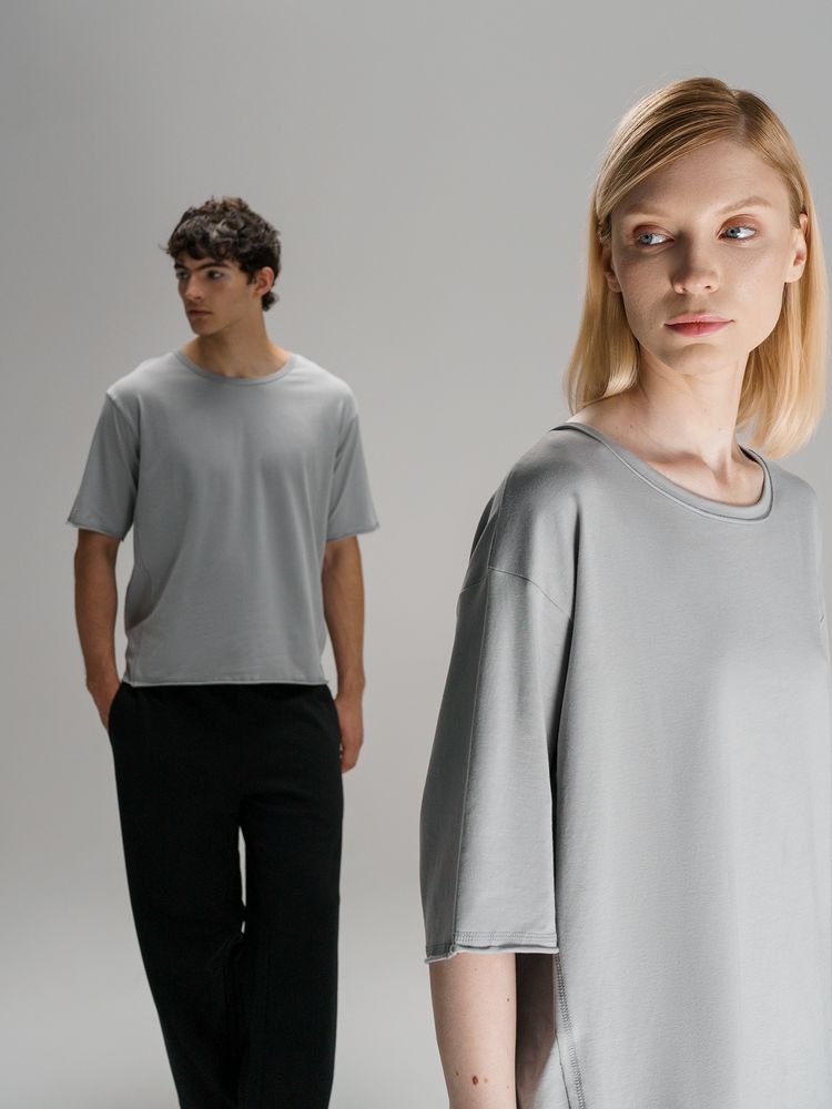 Футболка унисекс свободной посадки Vozduh создана для тех, кто следит за трендами и ценит комфорт. Необработанные края рукавов и низа изделия добавляют ему оригинальности и легкой небрежности, а боковые вставки создают притягательный летящий силуэт.
