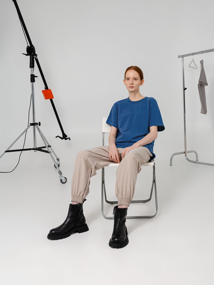Футболка унисекс свободного кроя со спущенным плечом и смещенными плечевыми и боковыми швами.