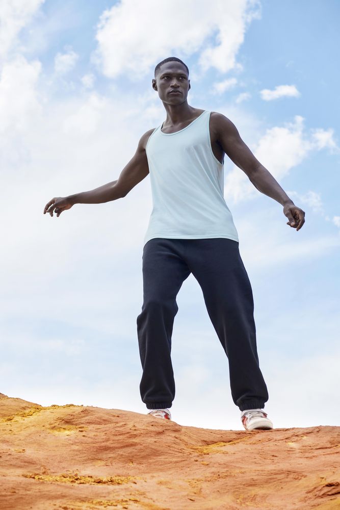 Удобная свободная посадка с глубокими проймами. Горловина и проймы обработаны бейкой. С боковыми швами.