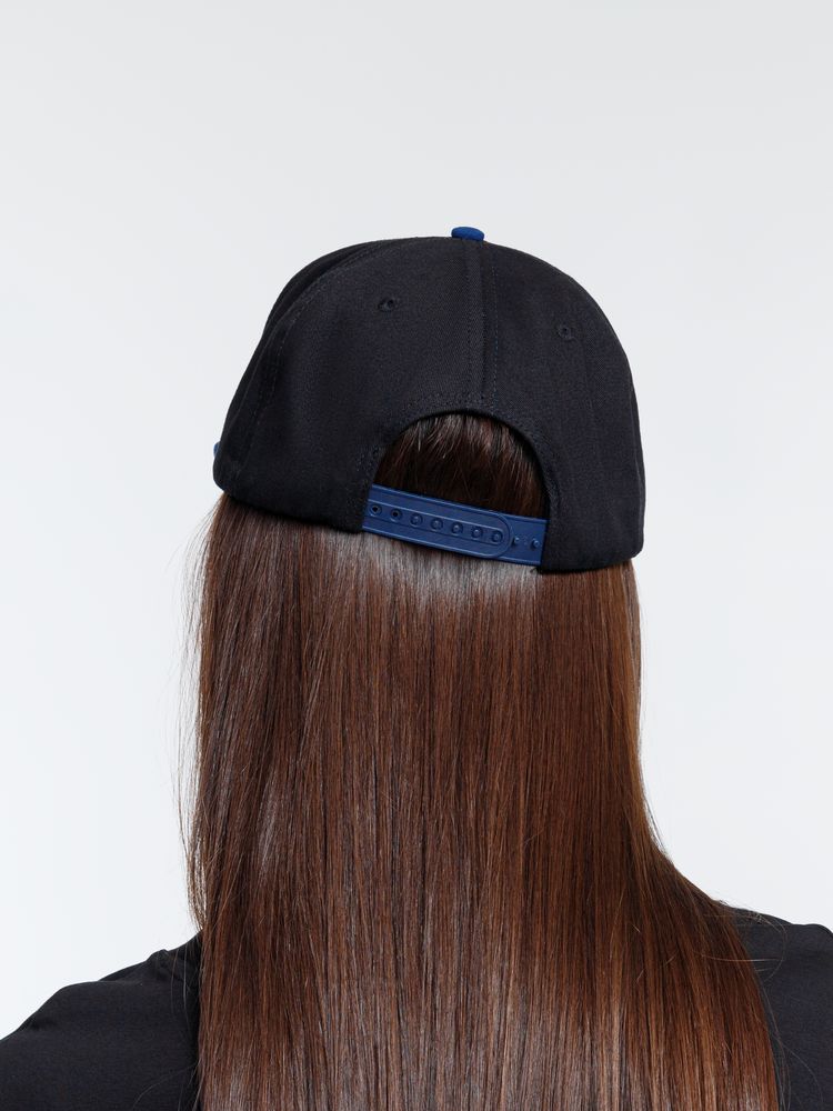 - Плотный контрастный прямой козырек из мягкой, приятной на ощупь ткани с велюровым эффектом