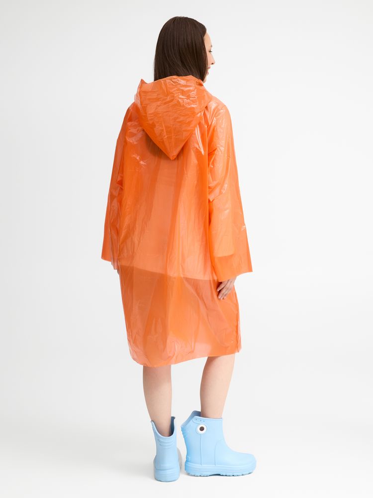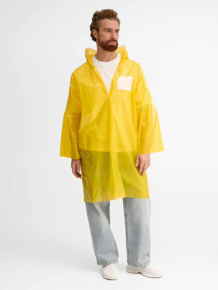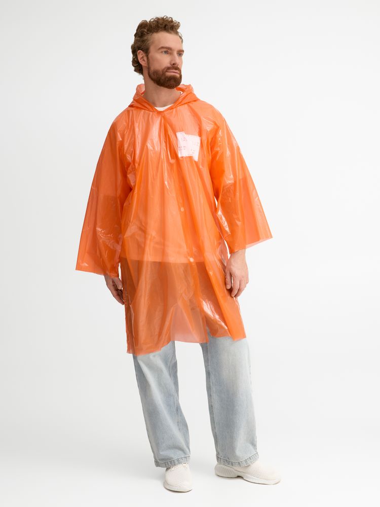 Дождевик-плащ с капюшоном и длинными рукавами из полиэтилена высокого давления (ПВД).