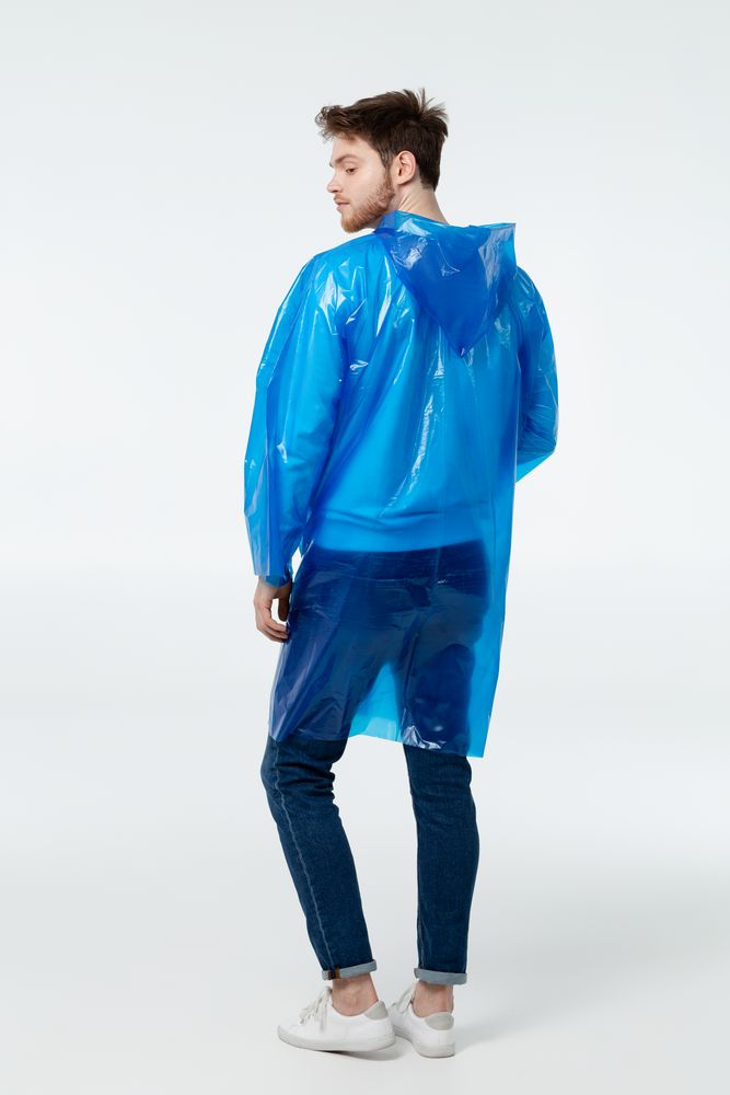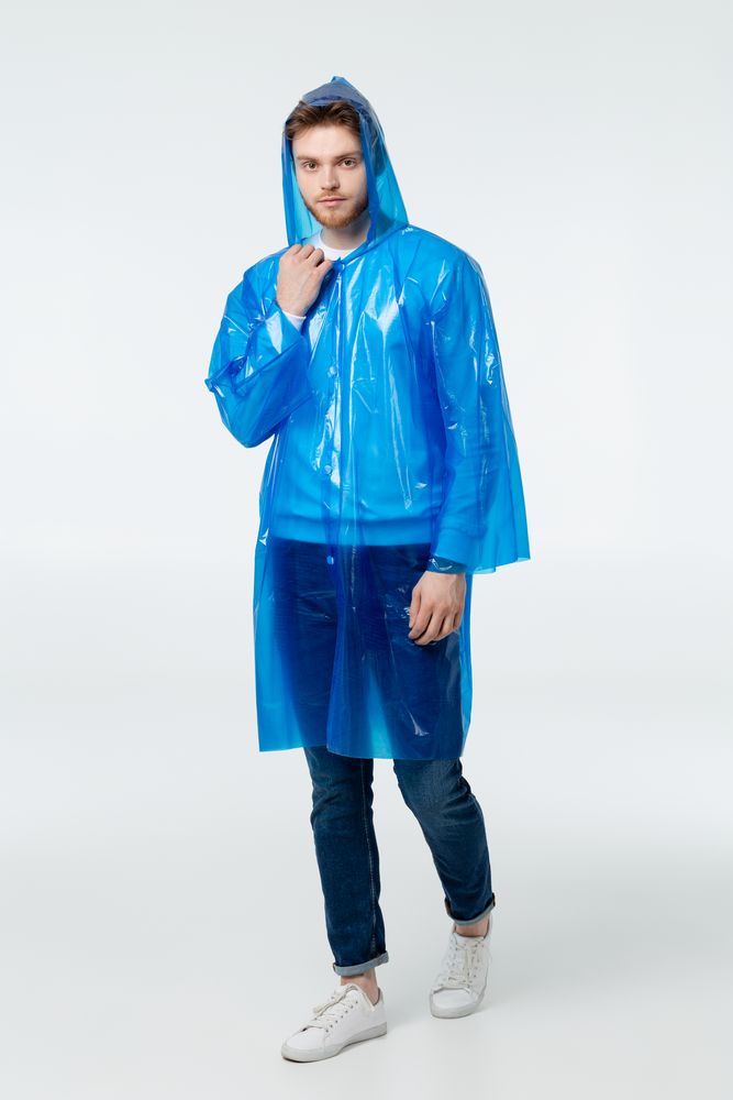 Дождевик-плащ с капюшоном и длинными рукавами из полиэтилена высокого давления (ПВД).