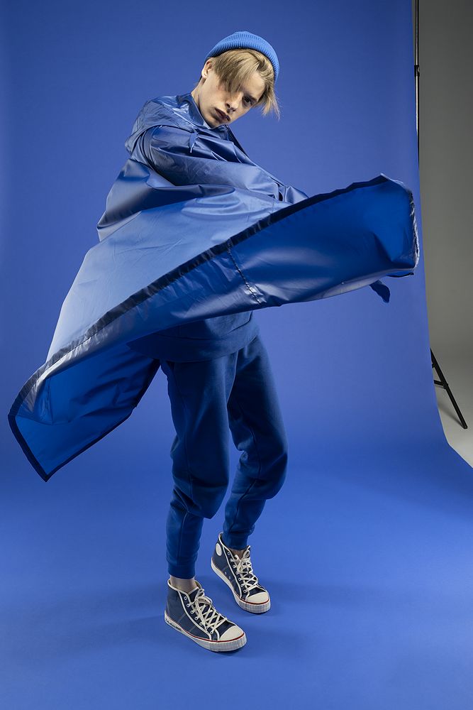 Плащ-дождевик на молнии с капюшоном из ткани таффета с полиуретановой пропиткой для защиты от сильного дождя.