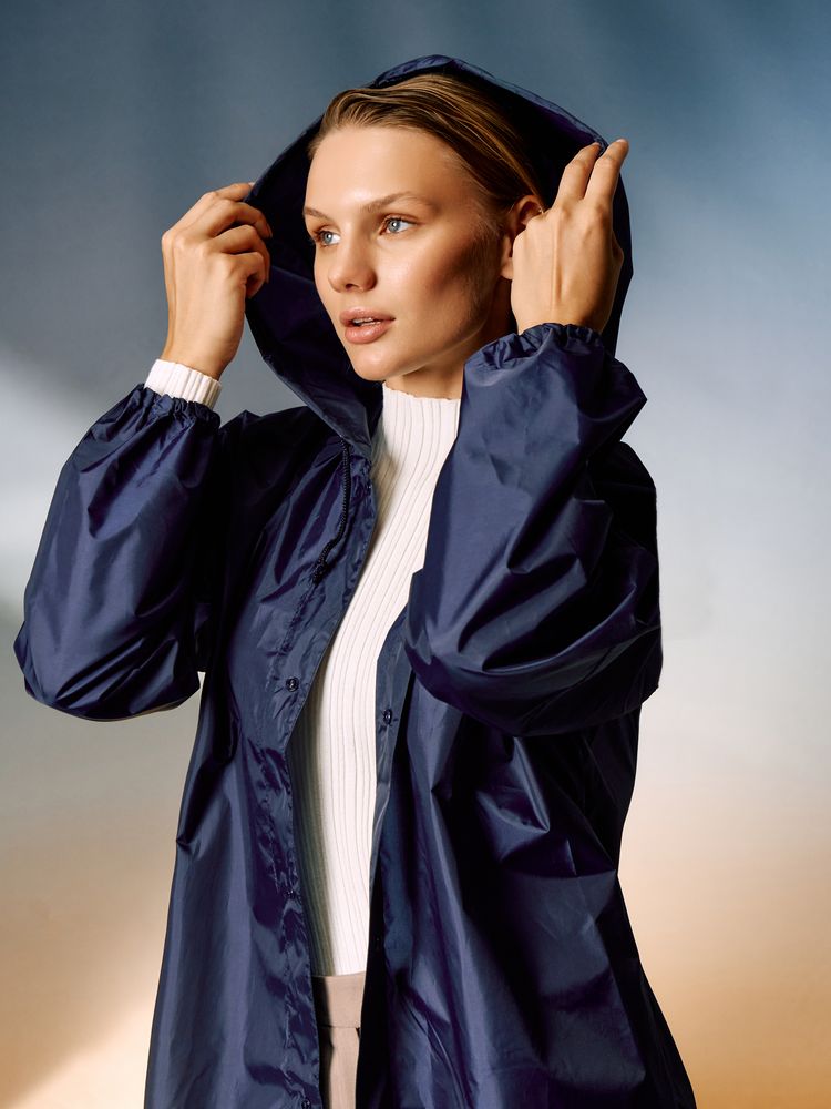 На Rainman получится нанести более яркое и четкое изображение с тонкими линиями, ведь переплетение нитей в ткани едва заметно. Фурнитура в цвет изделия удержит все внимание вокруг вашего маркетингового сообщения.Плащ-дождевик из ткани таффета на кнопках с капюшоном.