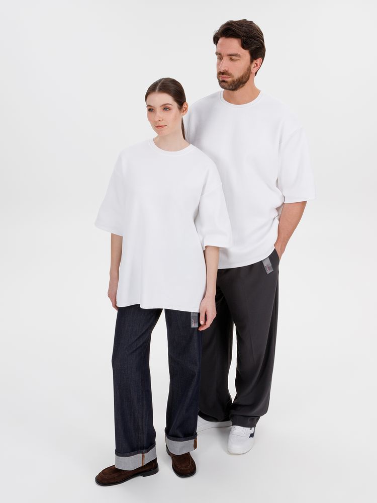 Siluetti Volumica — плотный вязаный джемпер-футболка прямого кроя с круглым вырезом и спущенной линией плеча. Фирменная бирка из силиконовой ленты станет интересной деталью, привлекающей внимание на фоне общей лаконичности модели.