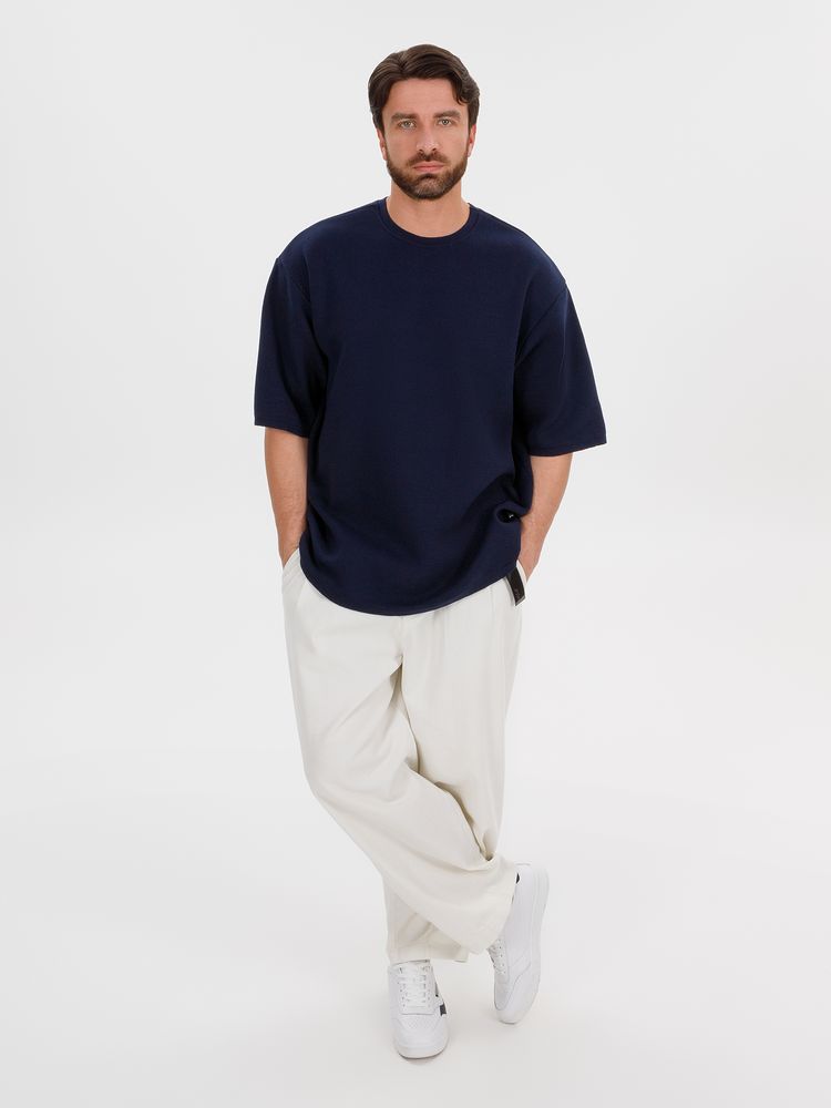 Siluetti Volumica — плотный вязаный джемпер-футболка прямого кроя с круглым вырезом и спущенной линией плеча. Фирменная бирка из силиконовой ленты станет интересной деталью, привлекающей внимание на фоне общей лаконичности модели.
