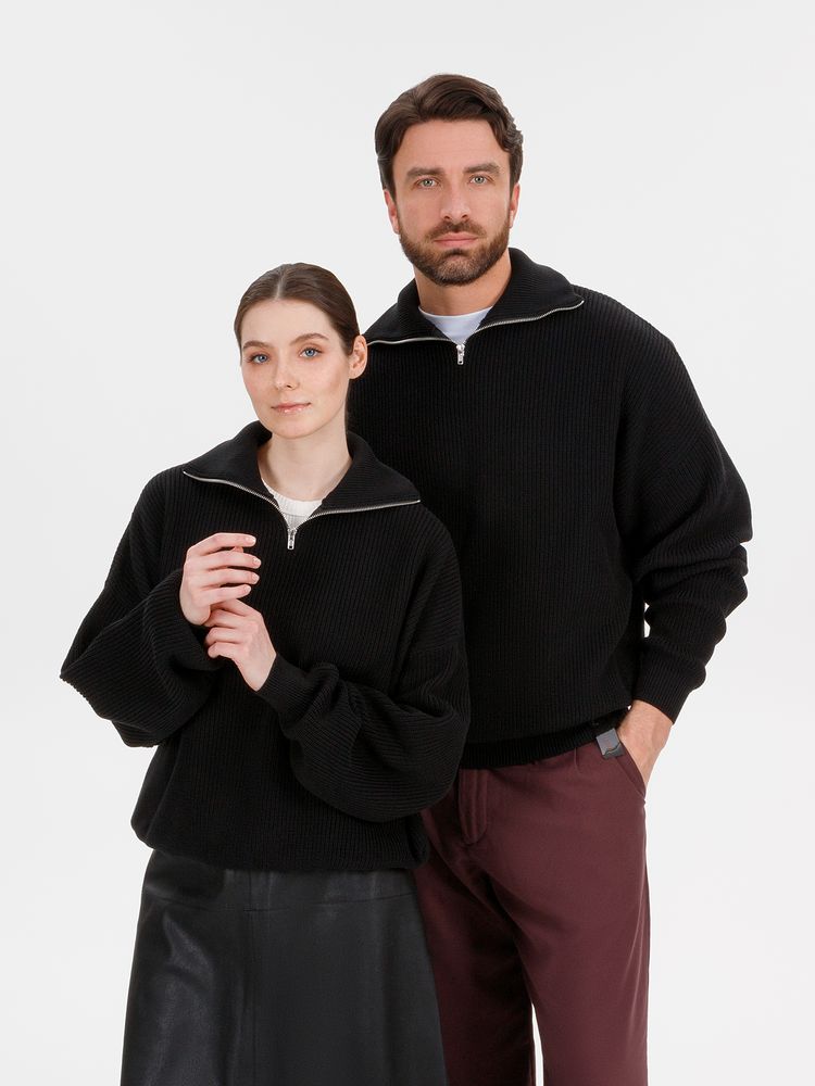 Siluetti Birne — плотный джемпер фактурной вязки со спущенной линией плеча позволит добавить в силуэт мягких линий и ненавязчивого объема, а также создать современный модный образ в лаконичном актуальном стиле, отдав при этом дань беспроигрышной классике. Дополнительным акцентом служит высокая горловина на молнии, а широкая резинка на рукавах и по нижнему краю изделия гарантирует максимальный комфорт.