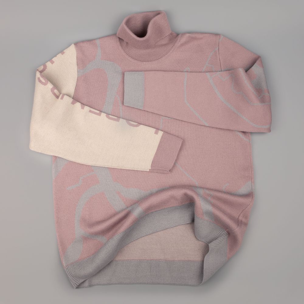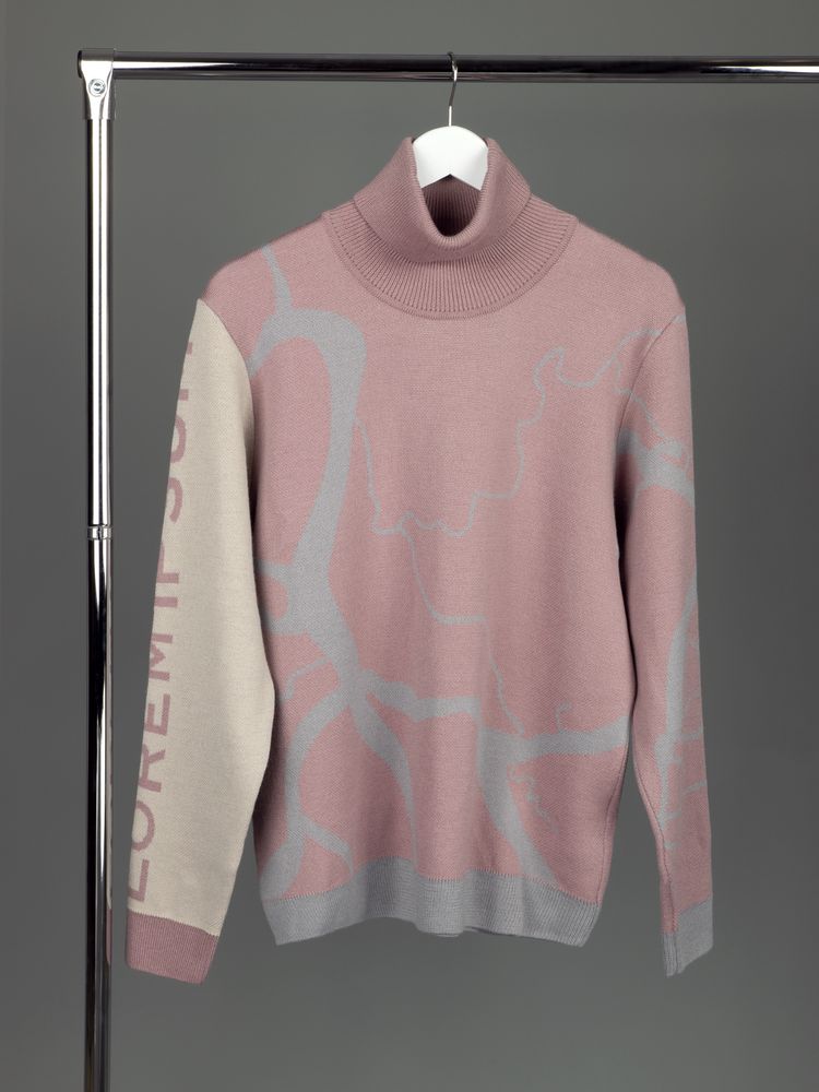 Модель: свитер жаккардовой вязки, плотный и теплый, 2–3 цвета нитей, гладкая поверхность.