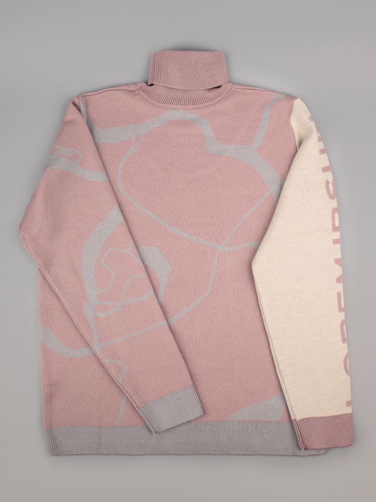 Модель: свитер жаккардовой вязки, плотный и теплый, 2–3 цвета нитей, гладкая поверхность.