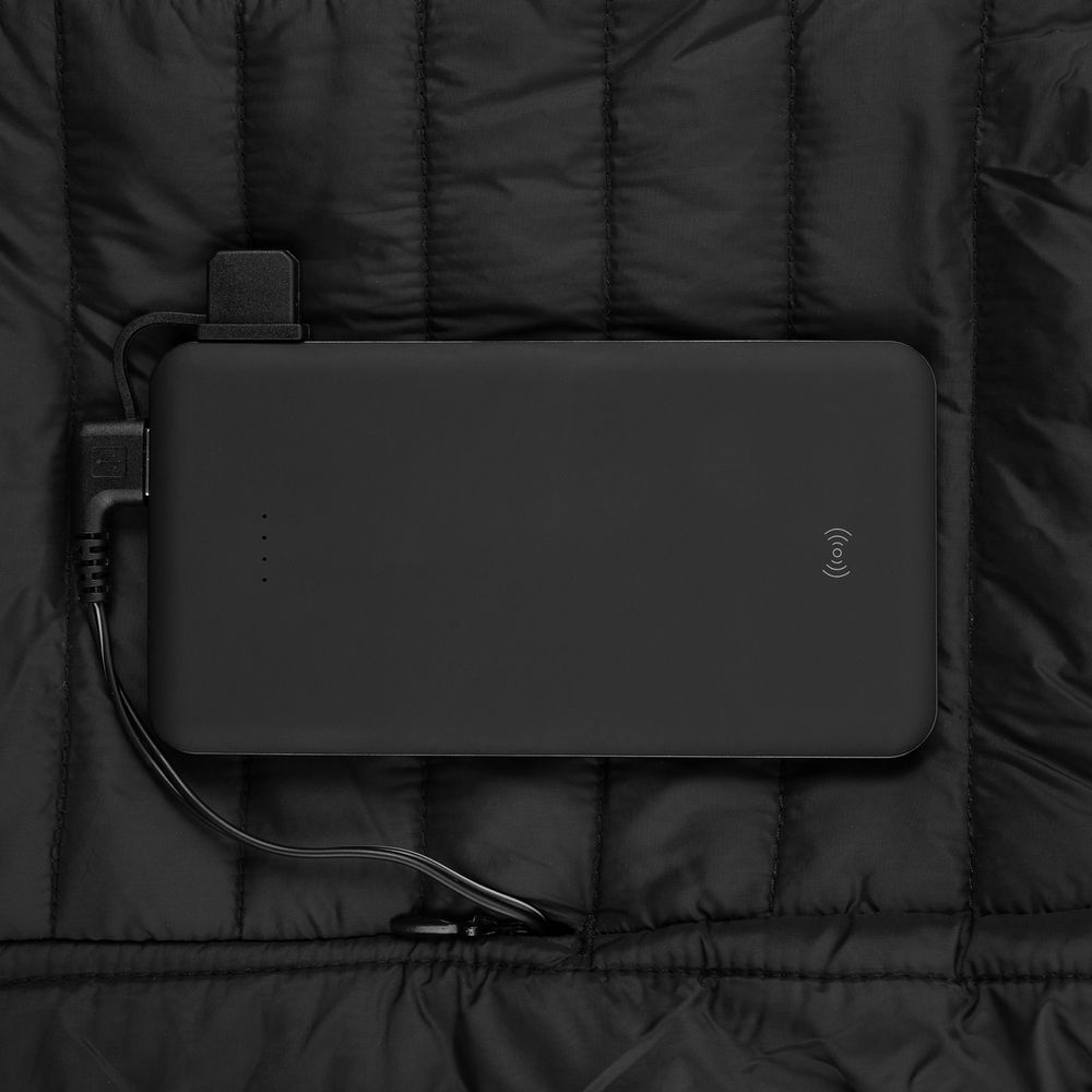 1. Подключите внешний аккумулятор к кабелю во внешнем кармане куртки.