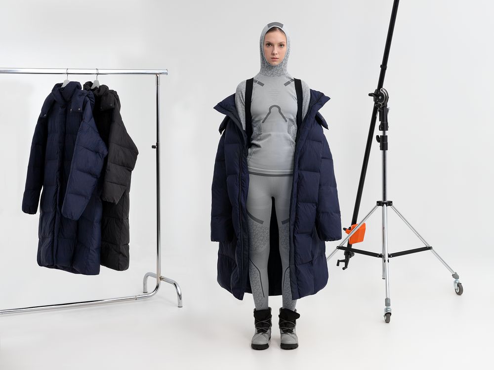 Удлиненный пуховик унисекс с капюшоном.