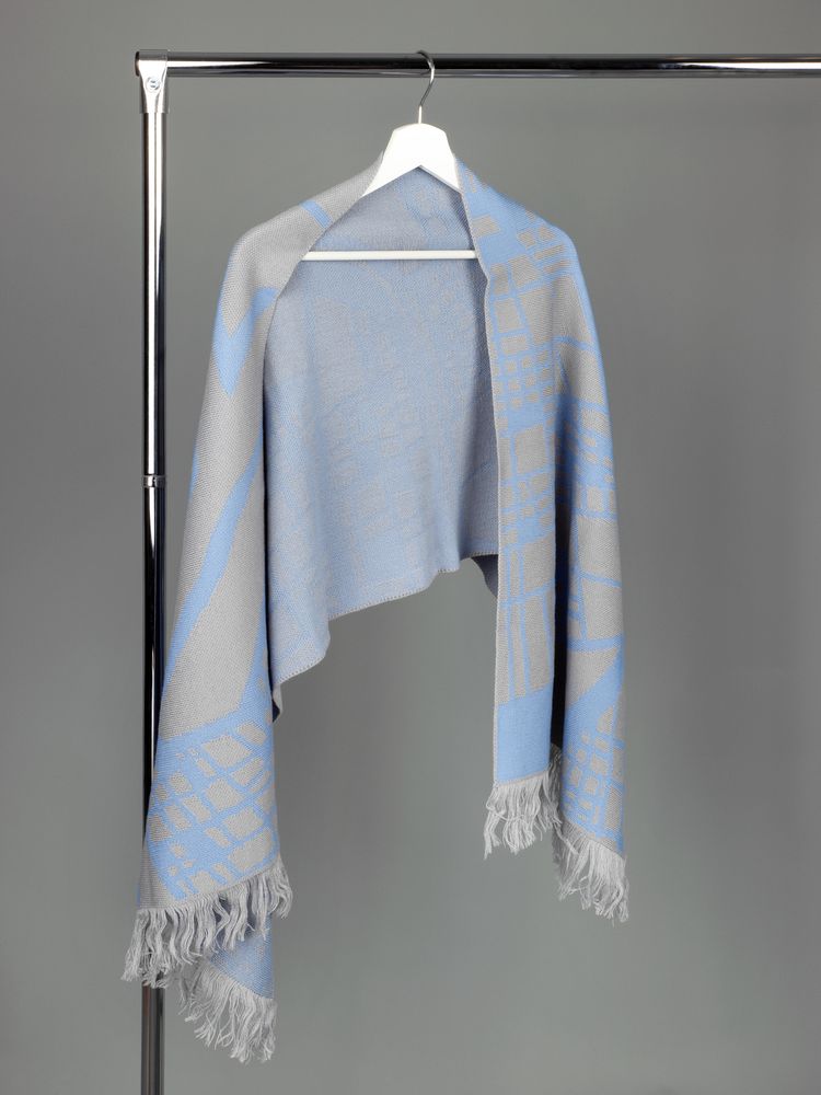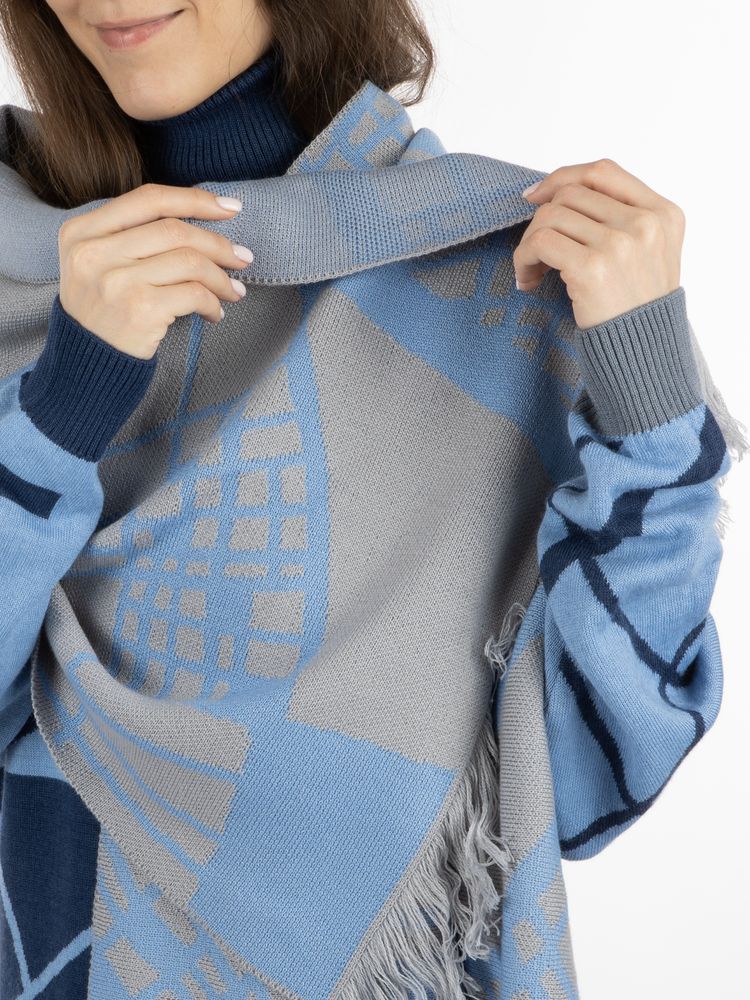 Модель: палантин жаккардовой вязки, плотный и теплый, 2-3 цвета нитей, гладкая поверхность, вывязанная бахрома длиной до 10 см. Воспринимается как односторонний из-за ряби на изнанке.