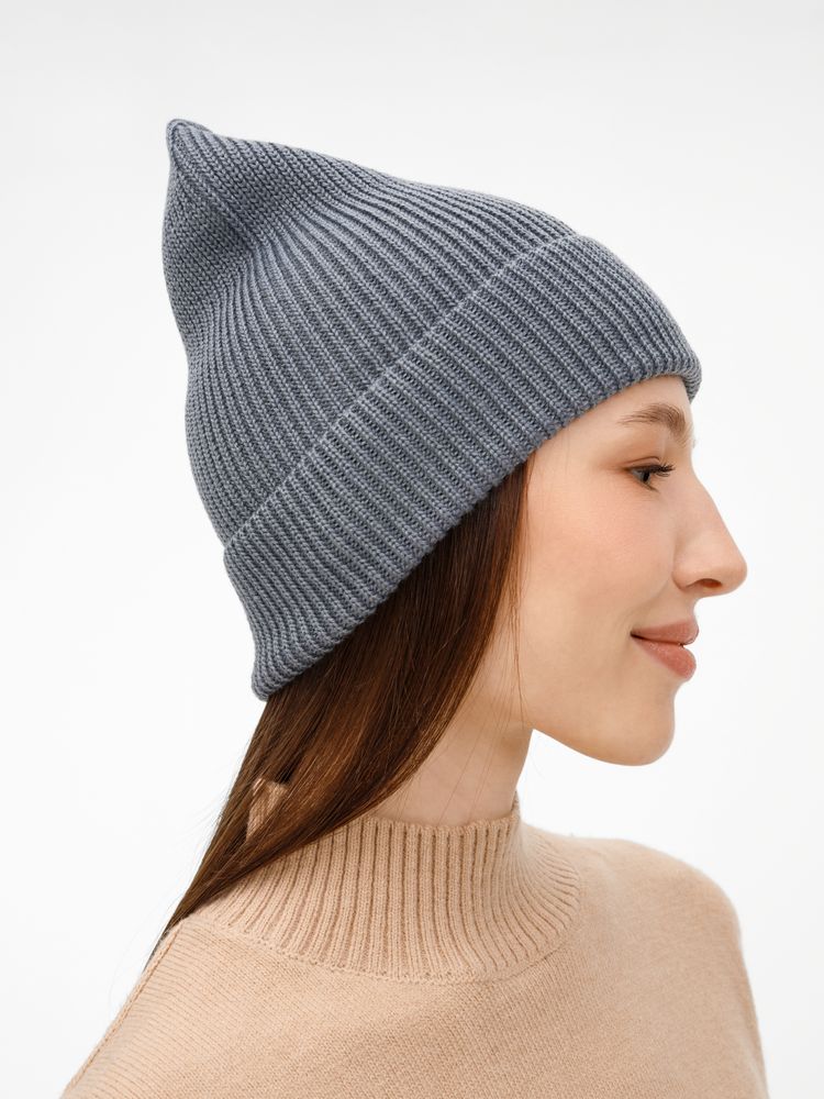 Однослойная шапка фактурной вязки с отворотом.