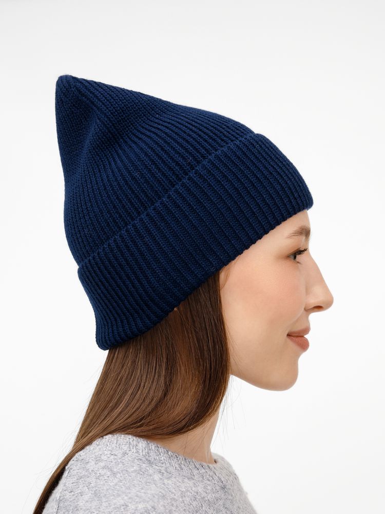 Однослойная шапка фактурной вязки с отворотом.
