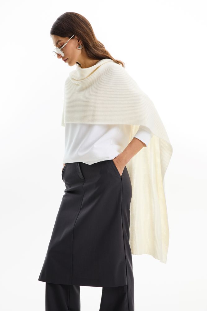 Однослойный шарф фактурной вязки с отверстием для быстрого и удобного завязывания.