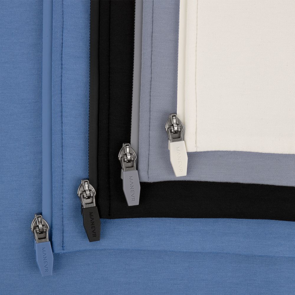 Коллекция текстиля Manevr Sport с продуманным анатомическим кроем выполнена из высокотехнологичного трехслойного материала, известного как ткань скуба или трикотажный неопрен, в самом центре которого — объемные нити текстурированного полиэстера.