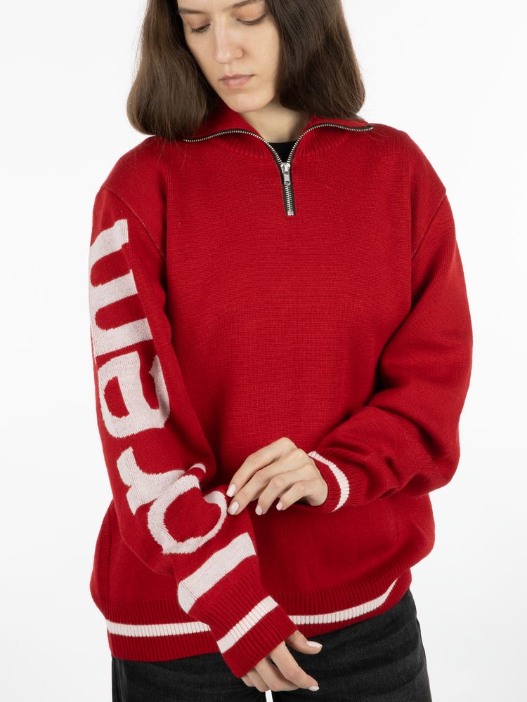 Модель: олимпийка унисекс жаккардовой вязки, ворот застегивается на молнию, гладкая поверхность.