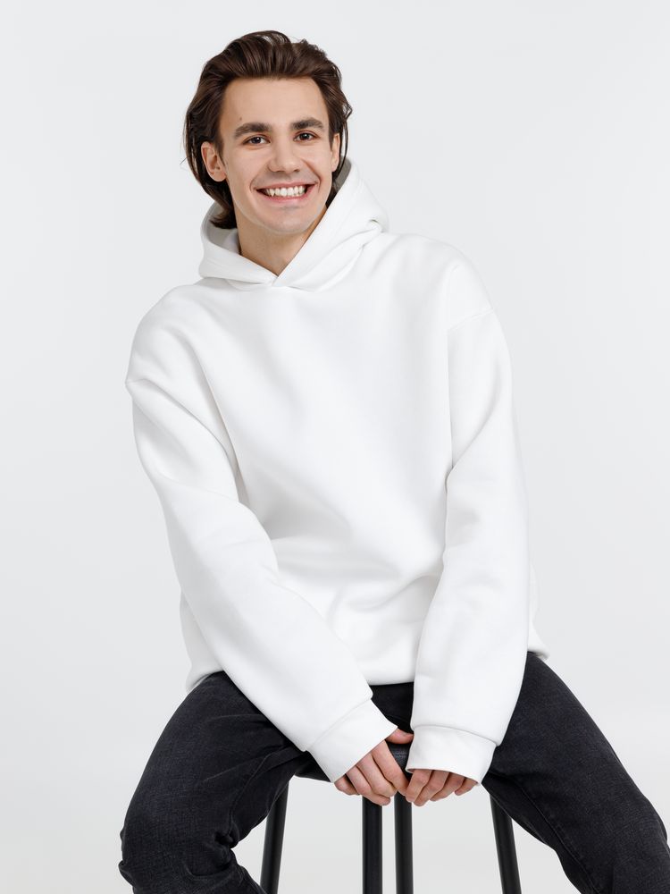 Худи унисекс One Size со спущенным плечом и карманами в боковых швах.