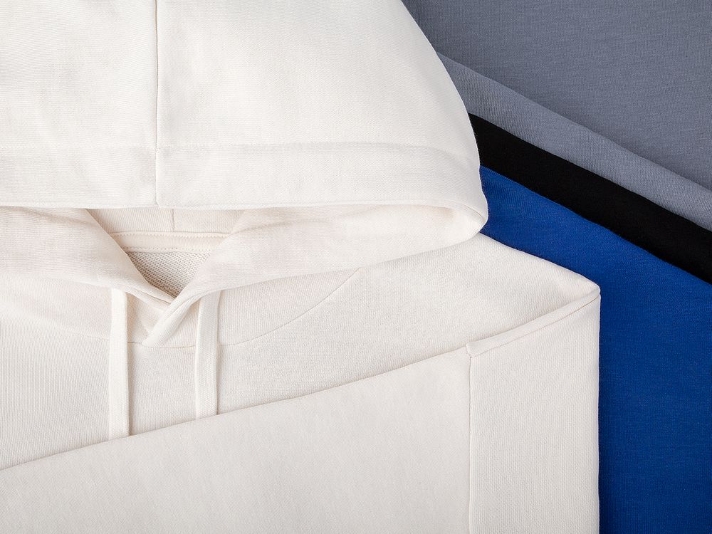 Худи унисекс свободной посадки со спущенным плечом.