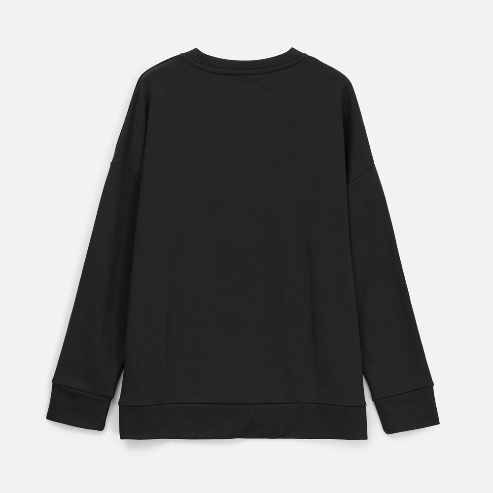 Свитшот унисекс свободной посадки со спущенным плечом.