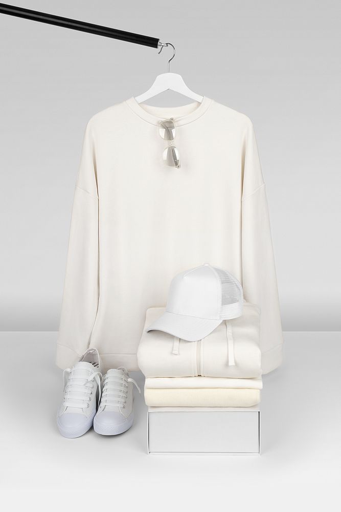 Свитшот унисекс свободной посадки со спущенным плечом.