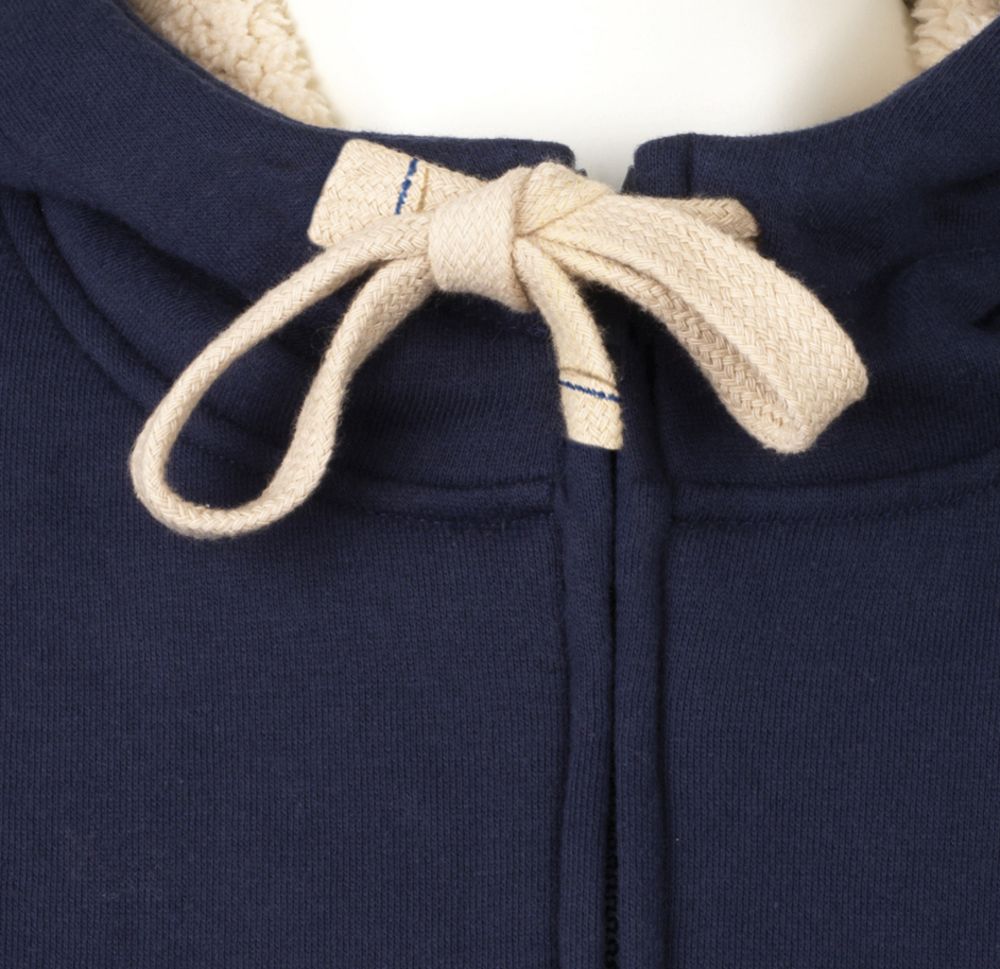 - Широкий съемный шнурок контрастного цвета на капюшоне