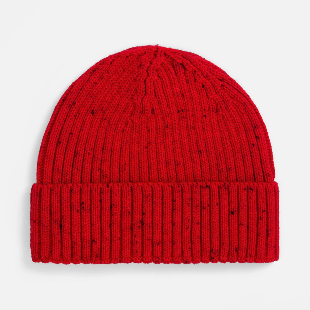 Шапка с отворотом, связанная объемной резинкой из мягкой акриловой пряжи, создает стильный силуэт и надежно защищает от холода. Особую индивидуальность ей придают контрастные вкрапления в пряже — деталь, которая делает каждое изделие уникальным.