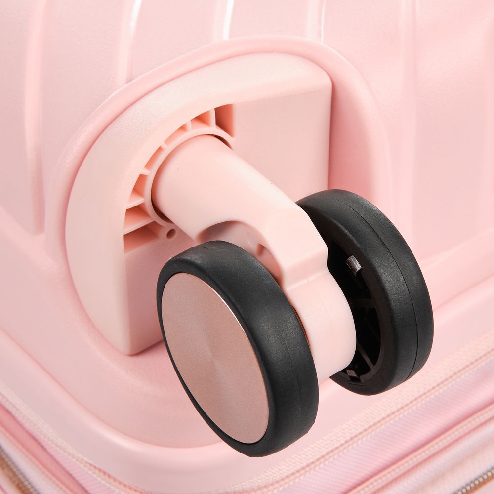 - Блок крепления колеса встроен в корпус чемодана, что обеспечивает лучшую устойчивость к внешнему воздействию