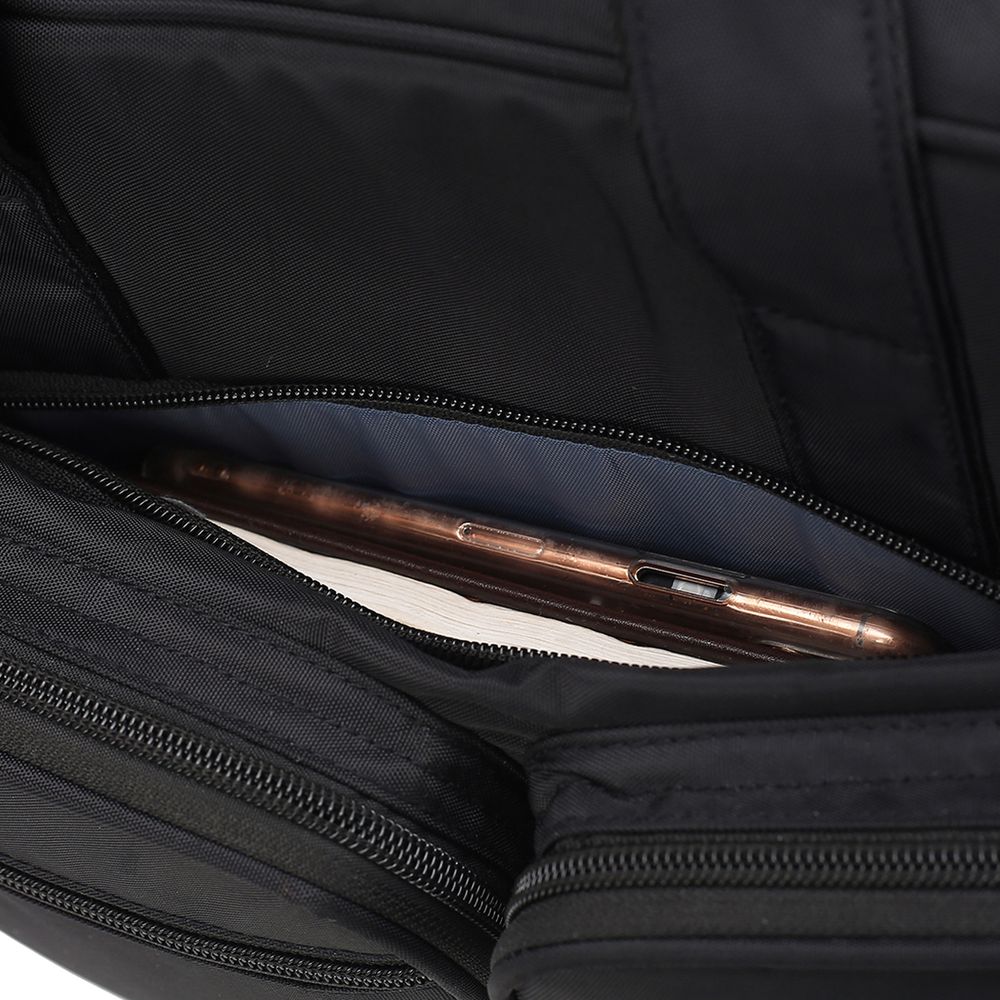 - Основное объемное отделение с двойными застежками-молниями для удобного доступа к устройству и документам