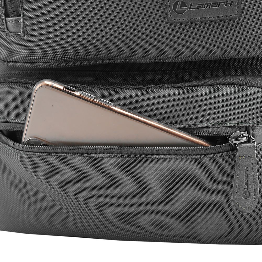- Четыре просторных передних кармана на молнии для хранения различных аксессуаров: ключей, наушников, мышки, смартфона или зарядных устройств