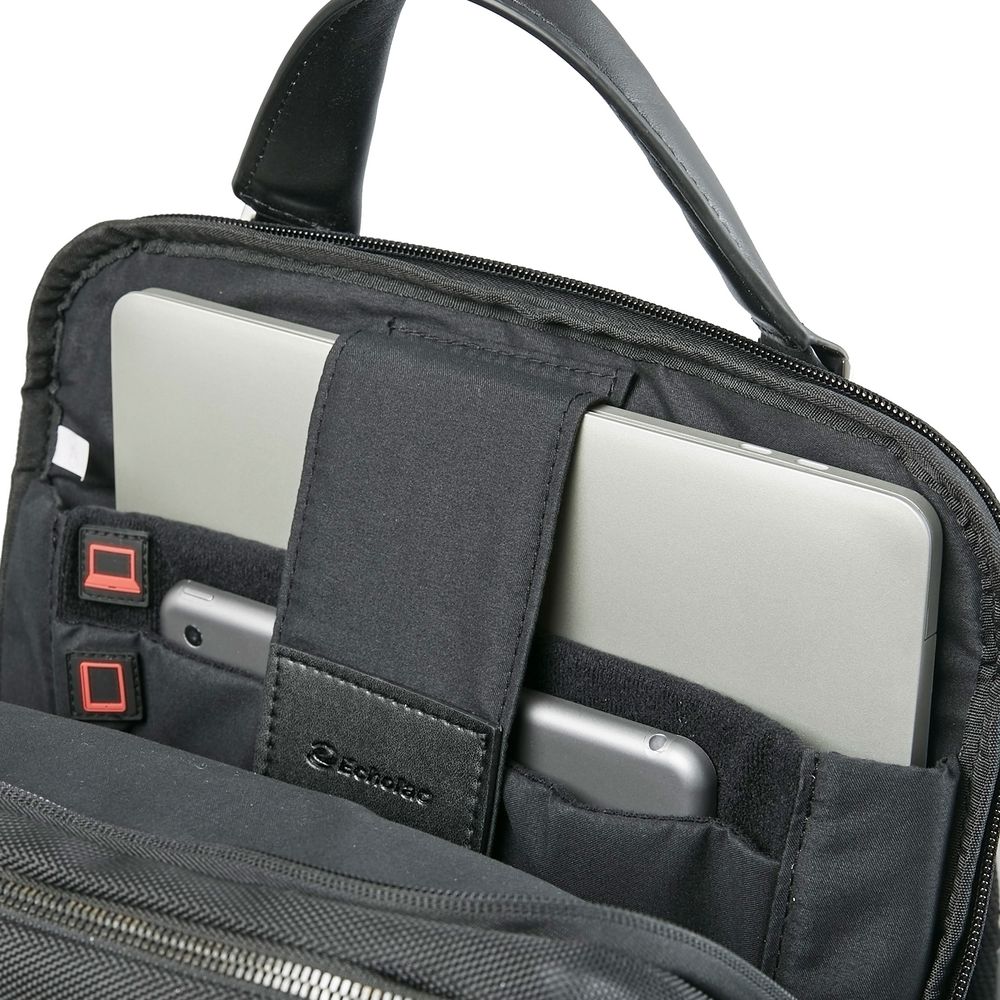 - Два отдельных кармана для ноутбука и планшета с мягким уплотнителем