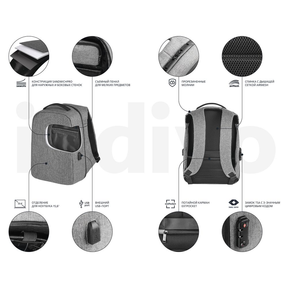 У нас Вы можете заказать Рюкзак с потайным карманом inGreed, серый качественного бренда Indivo с логотипом по выгодной цене. Выберите способ нанесения логотипа и добавьте товар в корзину. Окончательную полную стоимость с брендированием по Вашему эскизу и доставкой сообщит наш менеджер после оформления заказа.