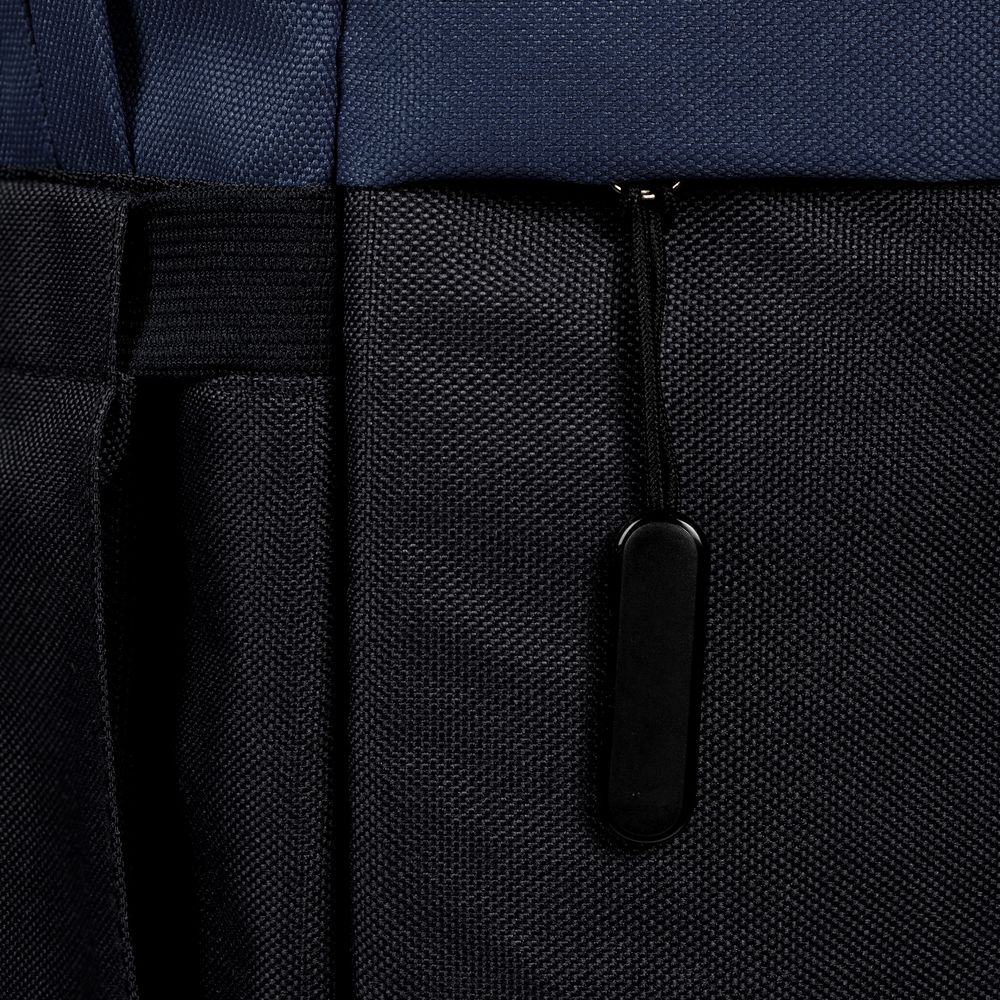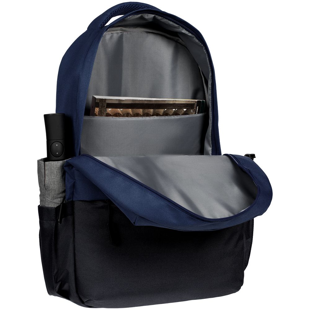 Двухцветное исполнение с темным низом и более светлым верхом, с одной стороны, помогает рюкзаку дольше сохранять опрятный внешний вид, а с другой — позволяет активнее и контрастнее выделить логотип компании.