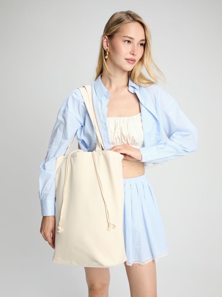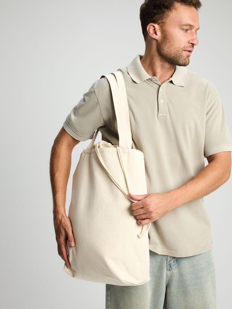 Сумка для покупок, закрывающаяся на утяжку со шнурком.