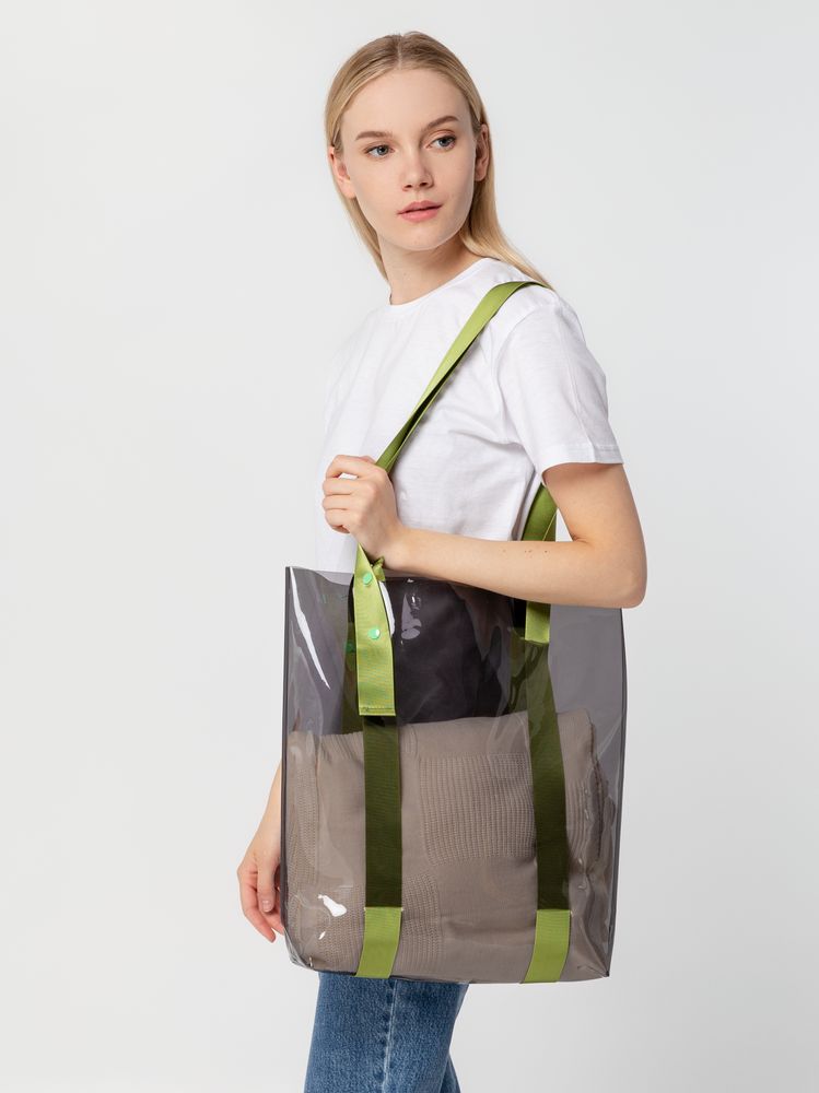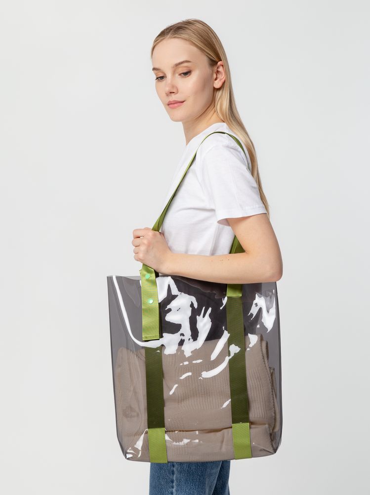 Шопер из ПВХ не промокает, легко чистится и выглядит стильно в любое время года и при любой погоде.