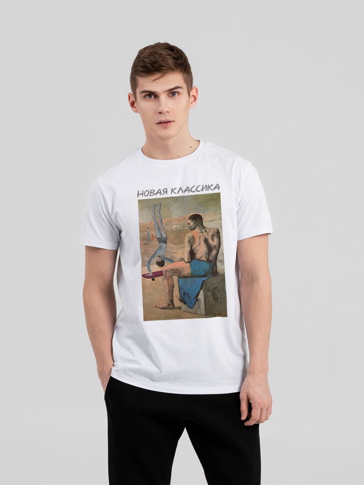 Некоторые современные вещи настолько прочно вошли в наш быт, что, кажется, они существовали всегда. А может так и было? Коллекция «Новая классика» — это попытка разглядеть будущее в прошлом!Классическая кроеная футболка унисекс из гребенного хлопка. Благодаря тонким и длинным волокнам хлопка ткань футболки отличается гладкостью, ровностью и прочностью, отлично сохраняет форму, не деформируются и не выцветает при стирке. Горловина выполнена резинкой 1x1. Слегка приталенный силуэт.