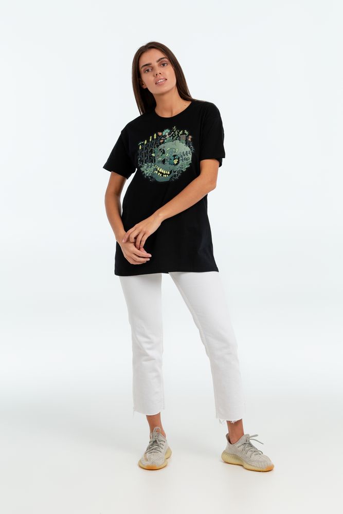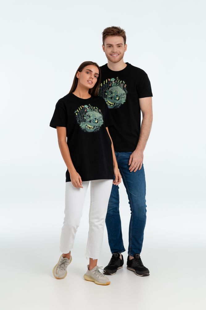 Дизайн футболки «Серенада» представляет собой своеобразную русскую готику в остроумном переосмыслении художника.