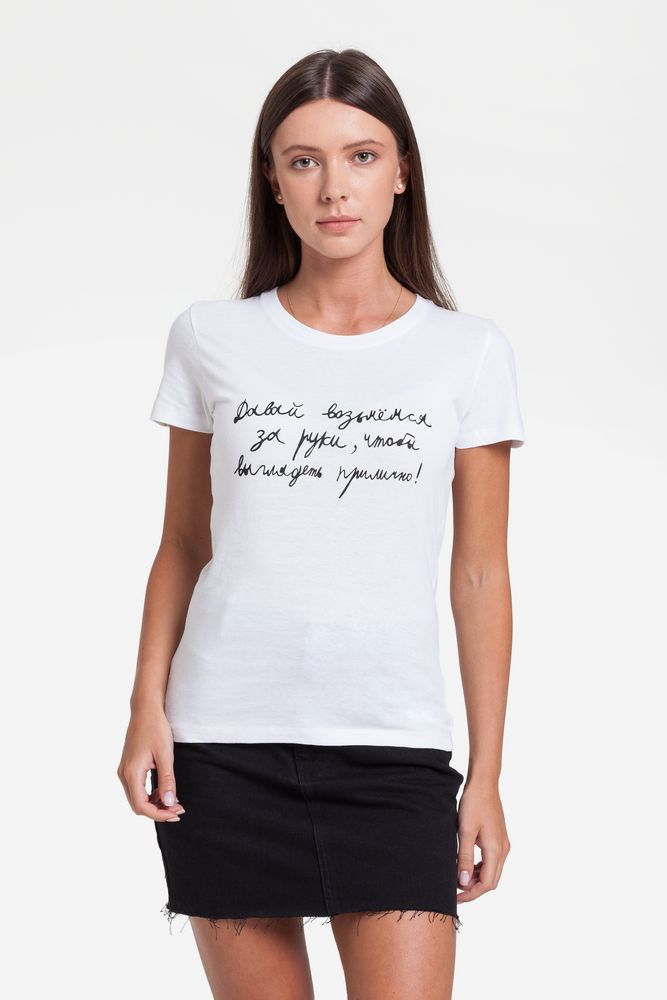Мы гарантируем, что у нас самая низкая цена на Футболка женская «Давай возьмемся за руки», белая, размер M, которые можно найти в интернете.