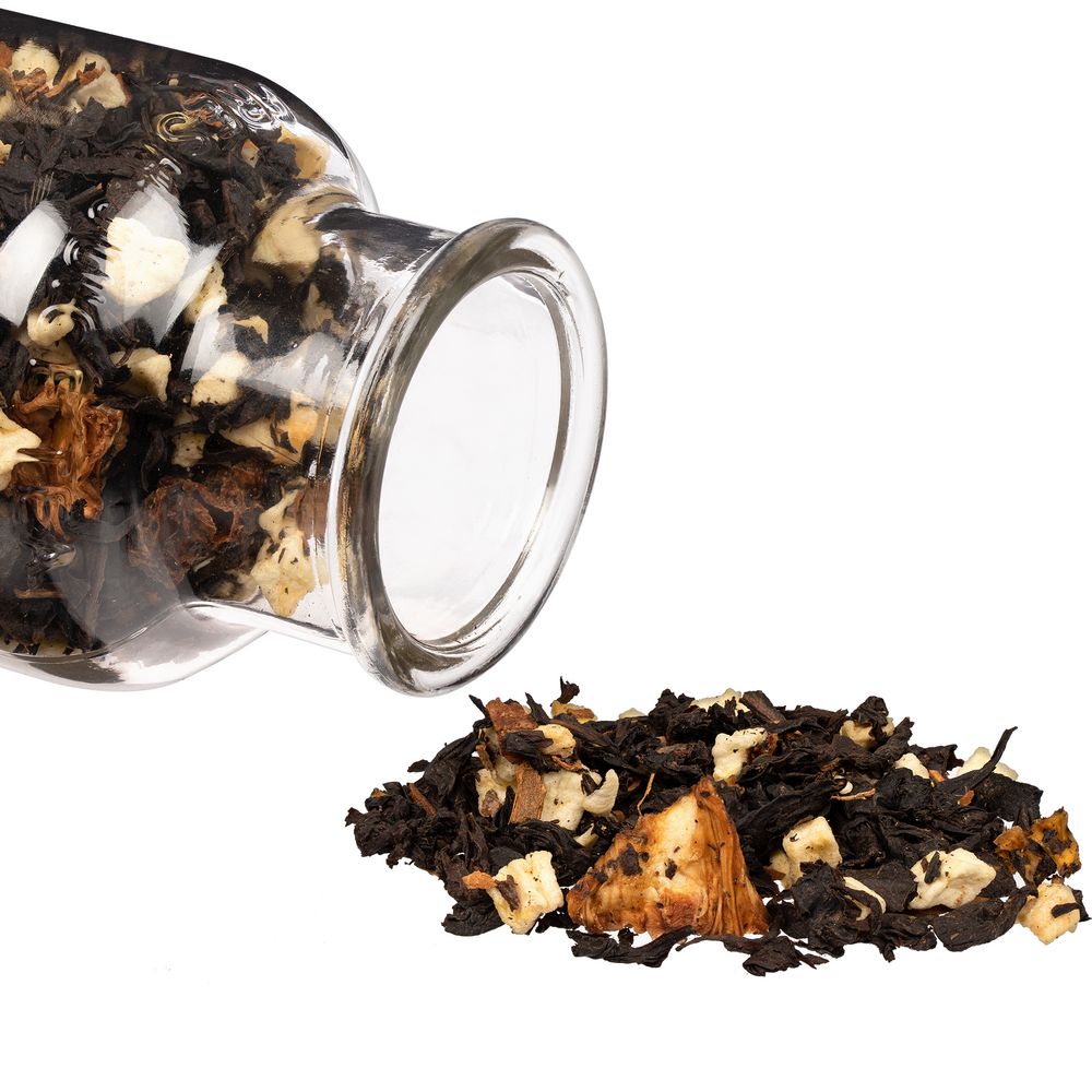 Состав: чай черный с ананасом и соком ананаса (чай черный байховый крупнолистовой, кусочки ананаса, сок ананаса), яблоко сушеное, мята сушеная, ароматизатор натуральный «Яблоко».