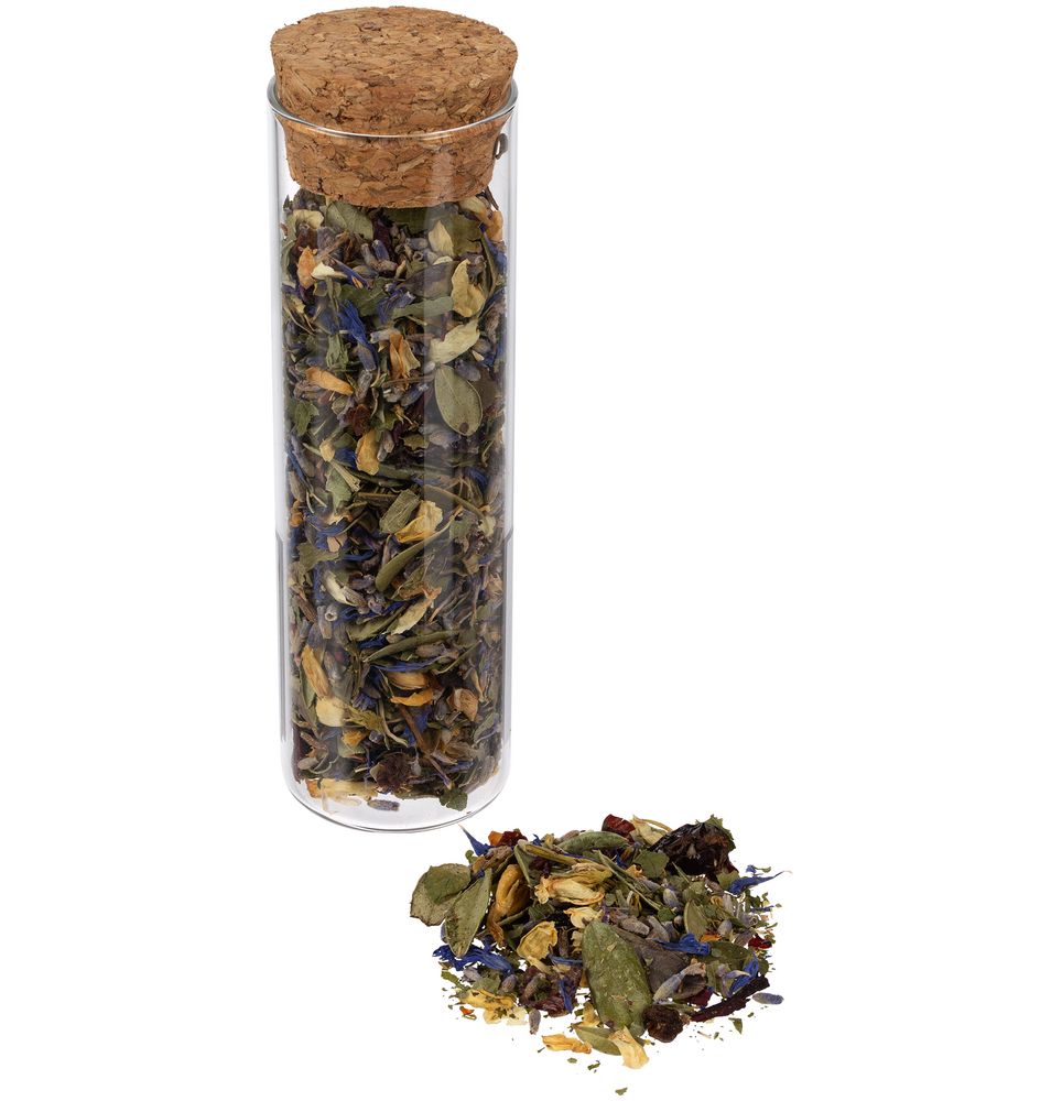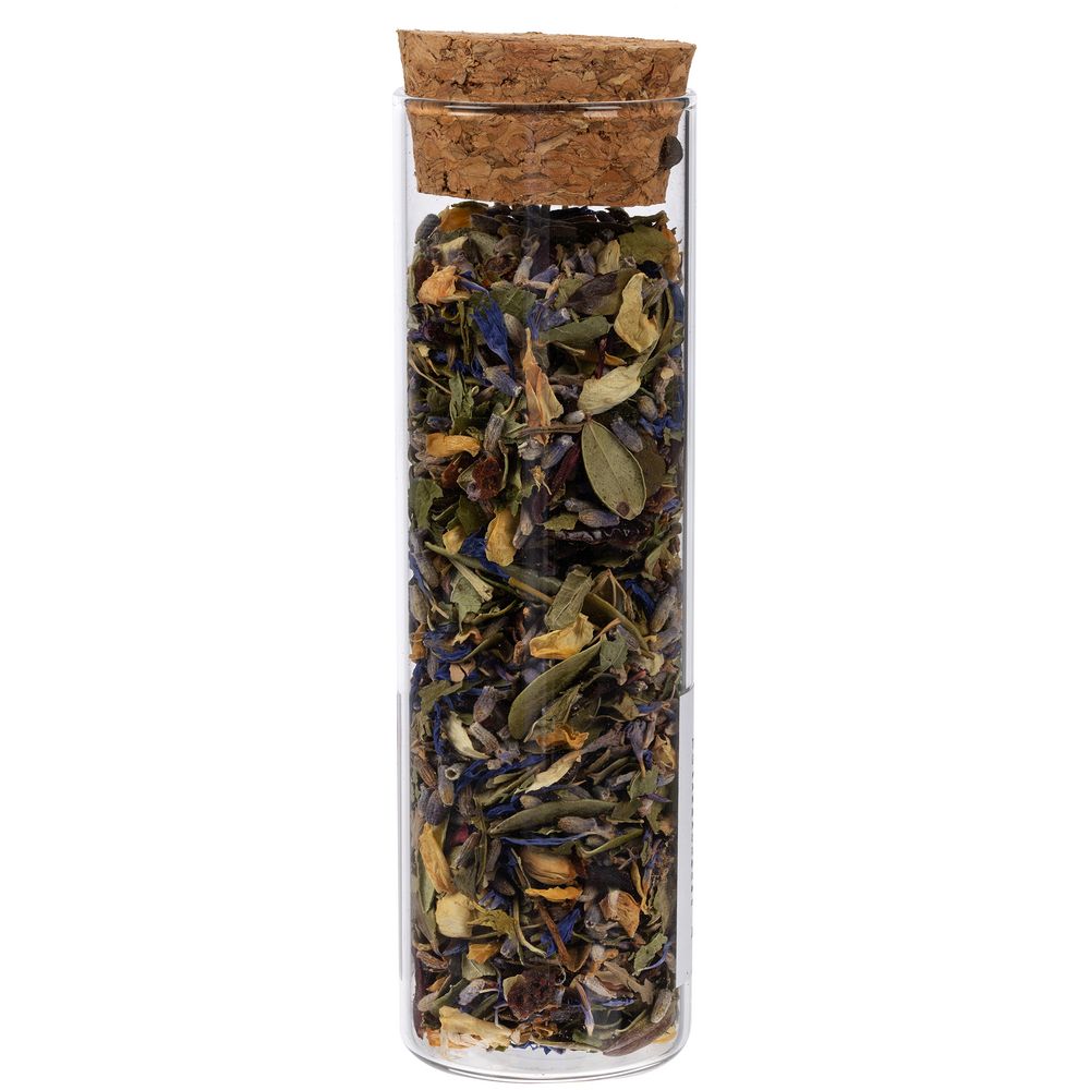- чай травяной «Горная лаванда» (состав: цветы лаванды, цветы жасмина, шалфей, толокнянка, шиповник, ягоды шелковицы, лепестки василька, каркаде), вес 20 г;