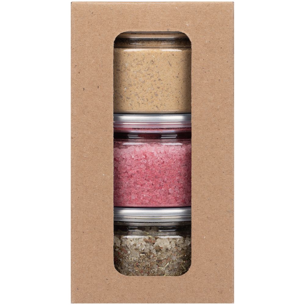 У нас Вы можете заказать Набор из 3 видов соли Savory Collection качественного бренда Сделано в России с логотипом по выгодной цене. Выберите способ нанесения логотипа и добавьте товар в корзину. Окончательную полную стоимость с брендированием по Вашему эскизу и доставкой сообщит наш менеджер после оформления заказа.