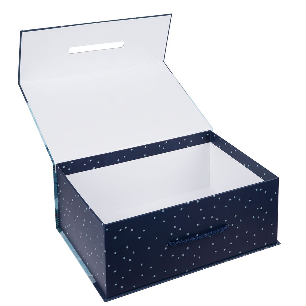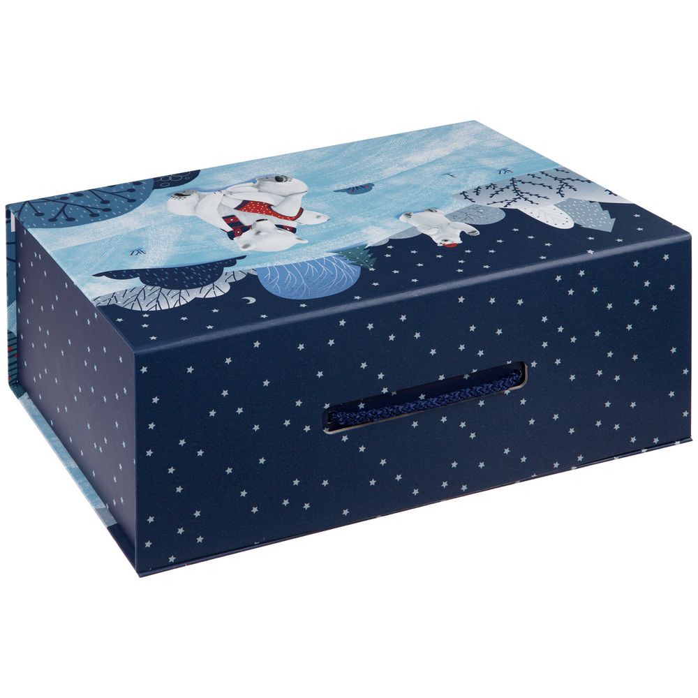 Коробка каширована мелованной дизайнерской бумагой с матовой ламинацией. Яркий рисунок выполнен в технике офсетной печати. Polaria оснащена удобной веревочной ручкой, крышка надежно фиксируется магнитами, что обеспечивает сохранность содержимого.Выдерживает вес до 2 кг.