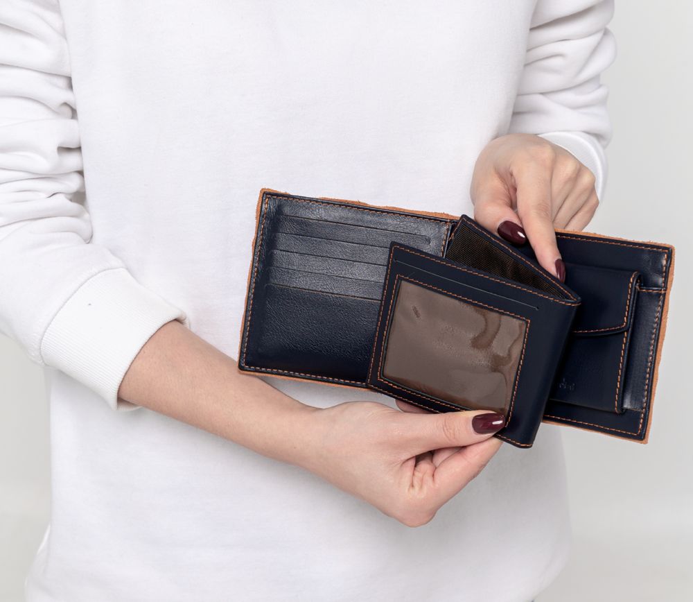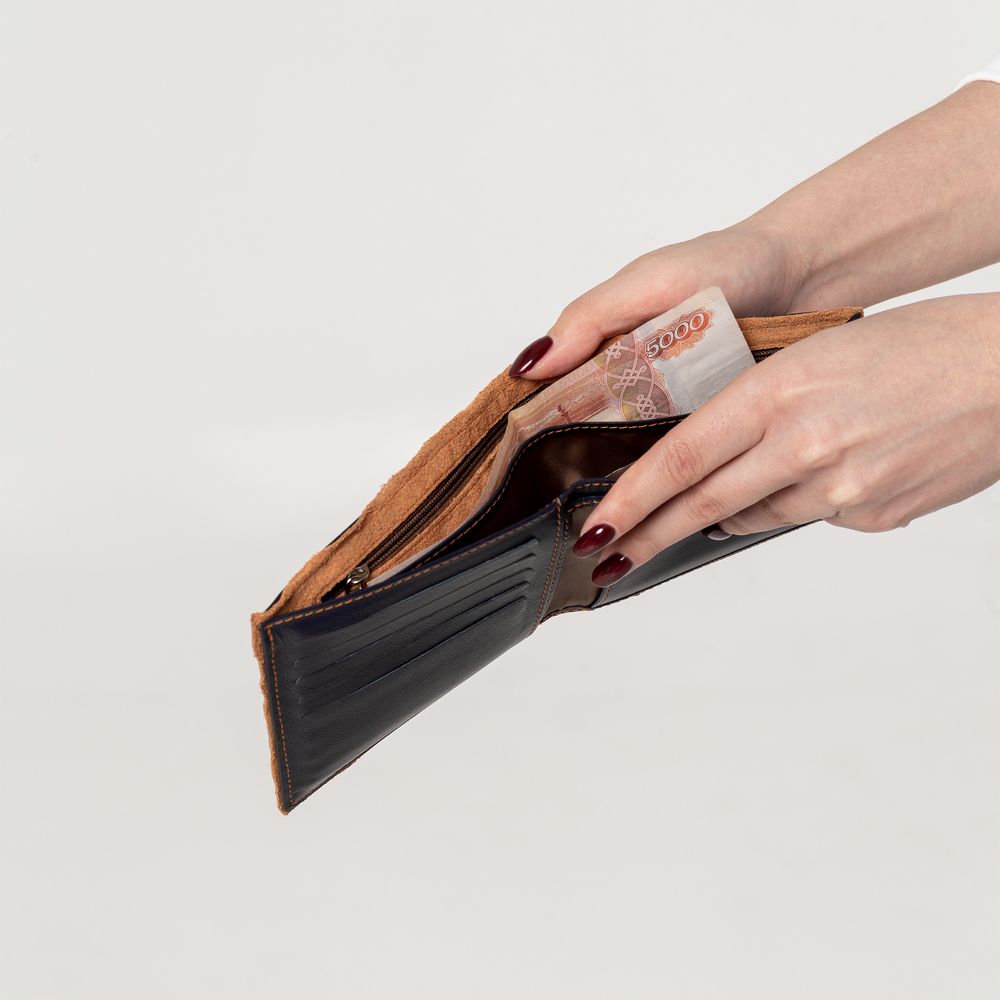 Двойное отделение для банкнот, карман для монет, съемное отделение для пластиковых карт, водительского удостоверения и пропуска.Поставляется в чехле и подарочной коробке.