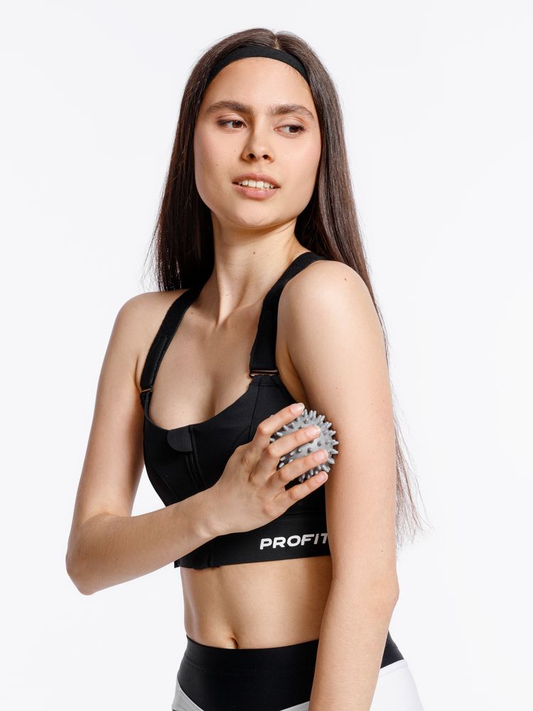 - Игольчатый серый мяч с мягкими шипами стимулирует нервные окончания, улучшает кровообращение, устраняет мышечные спазмы.