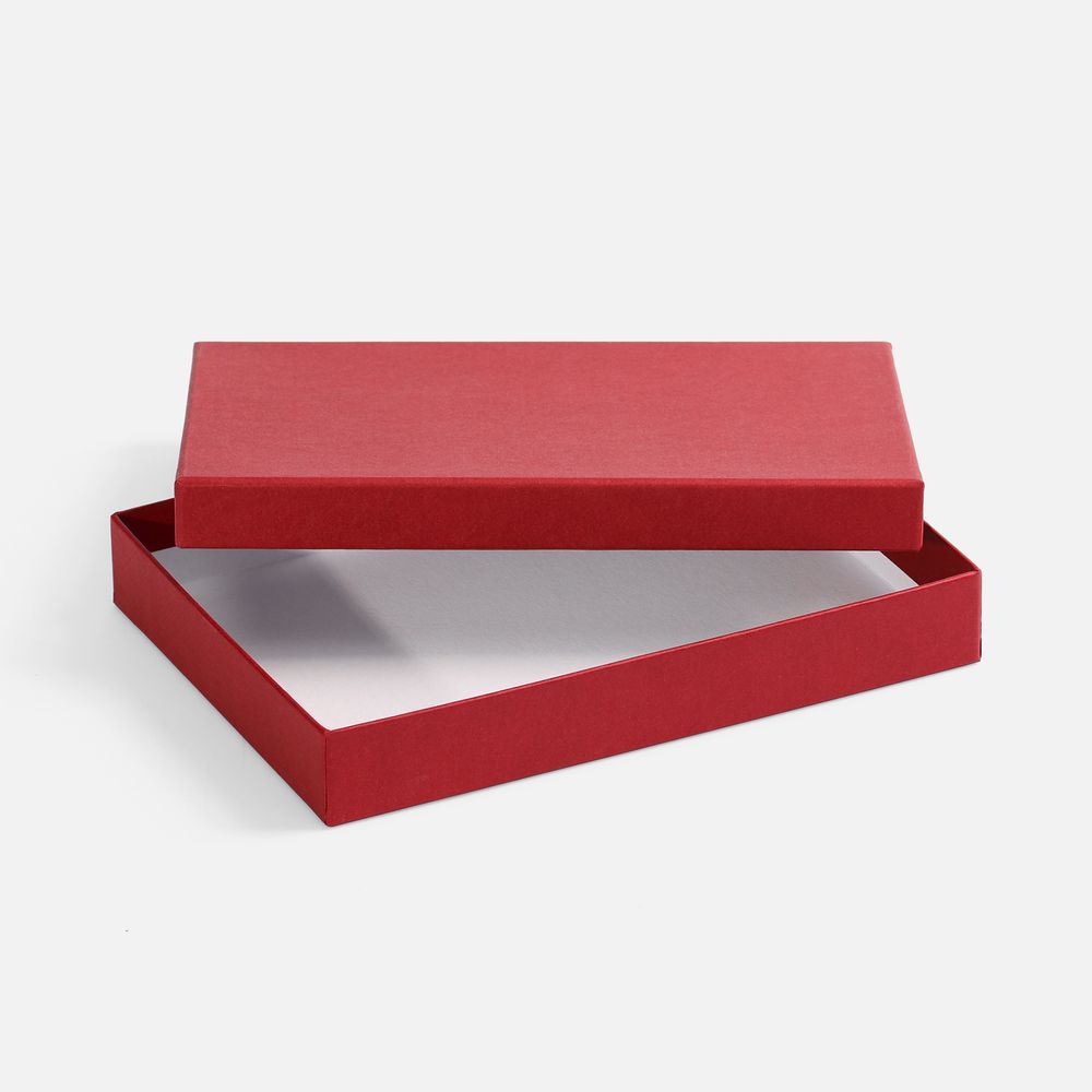 Коробка изготовлена из переплетного картона, кашированного гладкой дизайнерской бумагой Malmero.